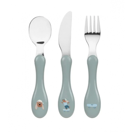 Avec ses détails fonctionnels et ses adorables imprimés, le service de couverts pratiques LÄSSIG en acier inoxydable, de la collection Tiny Team, fait de leurs premiers essais de repas autonomes un vrai jeu d'enfant.
