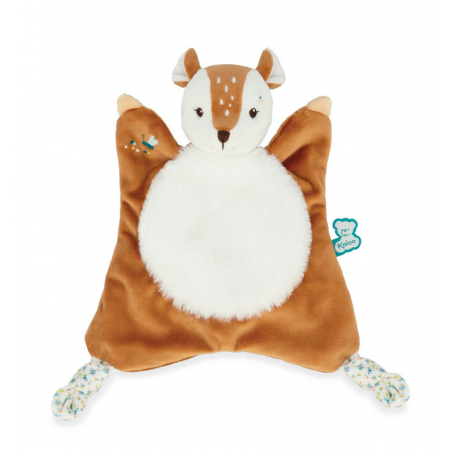 Nathan le faon est un vrai Fripon ! Voilà le doudou qui émerveillera chaque instant de la vie de votre enfant : avec ses teintes lumineuses et sa fourrure d'une douceur exquise, Nathan est bien plus qu'un simple doudou Kaloo – c'est le compagnon idéal pour réconforter et câliner votre bébé dès la naissance. Les détails délicats de Nathan lui confèrent une touche de magie : il est orné d'un motif floral enchanteur, parsemé de boutons de mimosas et de confettis aux extrémités, créant ainsi une expérience sensorielle captivante pour bébé. Avec son ventre douillet, les câlins ne seront que meilleurs ! Les longs nœuds sont parfaits pour attacher une tétine, et offrent également des points de préhension stimulants pour les petites mains. Naturellement mignon et curieux, le faon est un animal faisant preuve de discrétion, mais pouvant aussi user de malice ! Le doudou Nathan attend avec impatience d’apporter tendresse et réconfort à votre bébé. Il est composé de micro-velours (polyester) et d’un rembourrage en polyester recyclé. Ce compagnon de tous les instants mesure 24 cm et est lavable en machine à 30°. Livré dans une boîte cadeau élégante de 21x6x23 cm, le Doudou Faon Nathan est prêt à être offert avec amour. Personnalisez votre cadeau en ajoutant un message affectueux dans l'espace prévu sous le couvercle, et créez ainsi un souvenir inoubliable pour les années à venir !