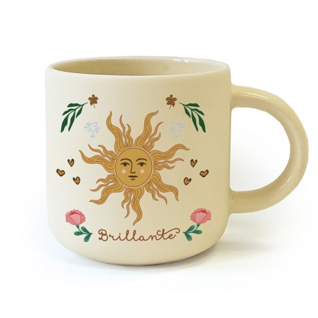MUG CERAMIQUE ROND BEIGE - LE SOLEIL "BRILLANTE" - HIRONDELLES ET COMPAGNIE